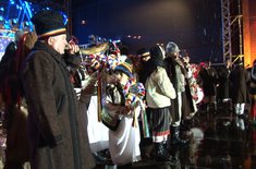 În drumul lor spre scena care îi aștepta în Piața Constituției, grupul din Vorona a traversat Calea Victoriei, pe traseul pe care, cu numai o zi în urmă, sute de mii de oameni s-au strâns pentru cortegiul funerar al regelui Mihai. Imaginea milioanelor de flori albe încă prinse în garduri de-a lungul întregii străzi a fost una impresionantă, dublată de ninsoarea cu fulgi mari care s-a abătut deasupra capitalei. Vizibil emoționați, voronenii au reuși însă la ora spectacolului să transpună întreg auditoriul în minunata atmosferă a sărbătorilor de iarnă.