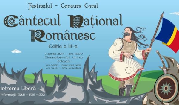 Centrul Judeţean pentru Conservarea şi Promovarea Culturii Tradiţionale Botoşani, instituţie de cultură aflată sub patronajul Consiliului Judeţean Botoşani, organizează Festivalul-Concurs Coral „Cântecul Naţional Românesc”, ediţia a III-a.