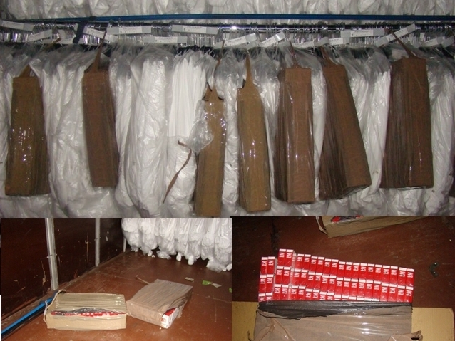 Aproximativ 3.000 pachete de ţigări ascunse pe umeraşe cu haine - FOTO