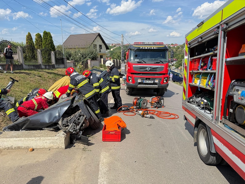 Accident cu victima încarcerată! Două persoane au ajuns la spital în urma impactului dintre două mașini