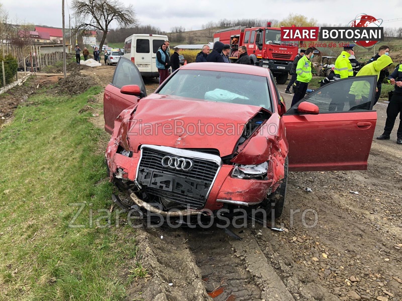 Un autoturism Lada 110 al cărui șofer care a încercat să facă un viraj la stânga fără să se asigure pe drumul național DN29 A, la ieșirea din Dorohoi spre Suceava, a fost lovit puternic de un alt autoturism, Audi, care circula regulamentar.