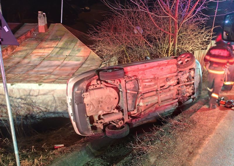 Accident la Curtești! O mașină s-a răsturnat pe o parte în afara părții carosabile