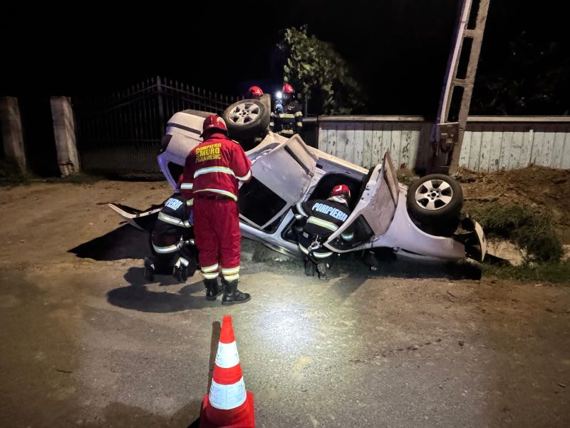 Echipajele au găsit autoturismul răsturnat pe capotă, în șanț, însă, din fericire, nu au existat persoane încarcerate sau rănite.
