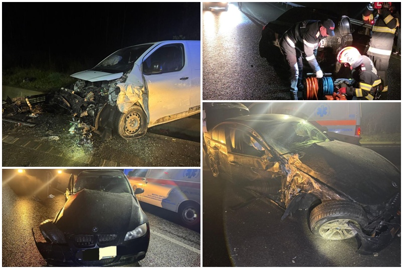 Accident rutier pe E 58. Bărbat ajuns la spital după coliziunea dintre o mașină și o autoutilitară
