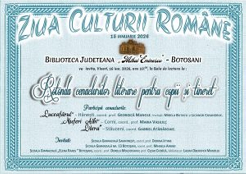 Seria activităților s-a încheiat la data de 16 ianuarie 2026, la sediul Bibliotecii Județene „Mihai Eminescu” Botoșani, prin desfășurarea unei activități de promovare a integrității alături de participanții la rotonda cenaclurilor literare din județul Botoșani și în cadrul vernisajului expoziției „Când poezia lui Eminescu cântă”.