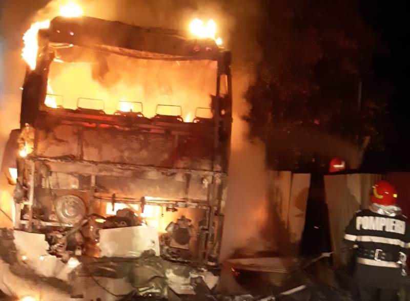 Un autobuz parcat în fața unui atelier de vopsitorie din Frumușica a fost distrus de flăcări. Alarma s-a dat în dimineața zilei de 20 septembrie 2020, puțin înainte de ora 04.00.