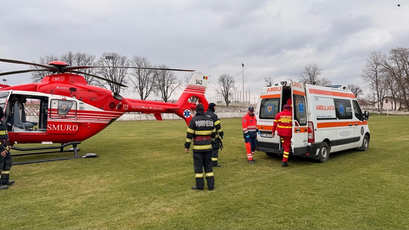Elicopterul SMURD a fost solicitat vineri, 27 martie 2026, pentru a prelua un bărbat, în vârstă de 66 de ani, din Dersca, județ Botoșani.
