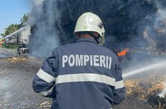 Pompierii botoșăneni au intervenit, miercuri, 19 iulie 2023, pentru a stinge un incendiu ce a cuprins un camion încărcat cu baloți de paie.