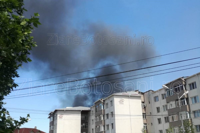 Incendiu puternic în Dorohoi. Un nor gros de fum a acoperit orașul. Pompierii intervin la fața locului - FOTO