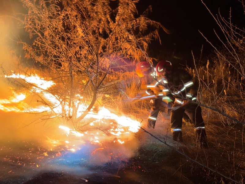 Intervenție a pompierilor pentru stingerea unui incendiu de vegetație uscată izbucnit pe aproximativ un hectar