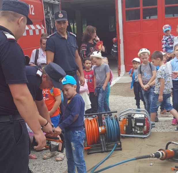 Vizibil emoţionaţi, copiii au purtat pe rând casca de protecţie, au folosit, unii pentru prima dată, pistolul cu apă şi au urcat în autospecialele de intervenţie. Vizitatorii au făcut cunoştinţă și cu „Gorun”, câinele – pompier, care a executat câteva exerciţii demonstrative, momente extrem de apreciate de audienţă.
