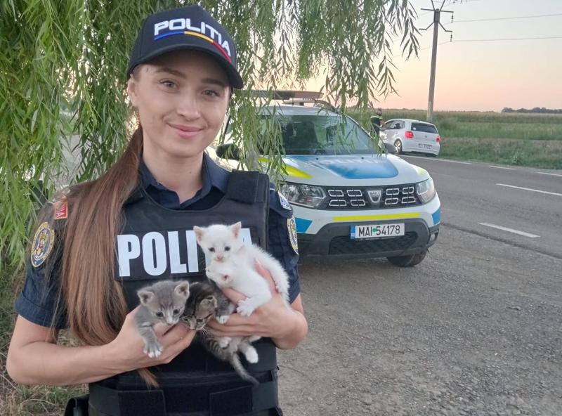 La data de 10 august 2024, colega noastră, Alexandra, ofițer de poliție în cadrul Serviciului de Ordine Publică, se afla în misiune, în orașul Bucecea, în momentul în care a găsit, abandonați, patru pui de pisică.