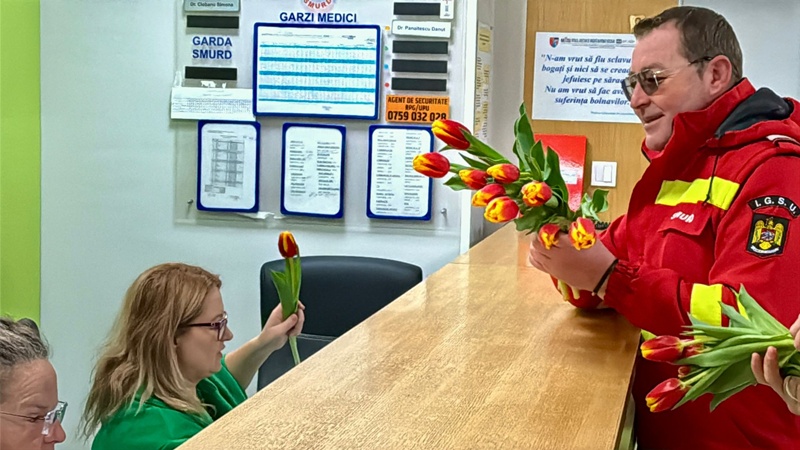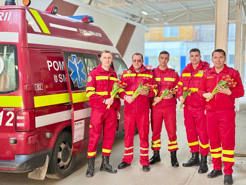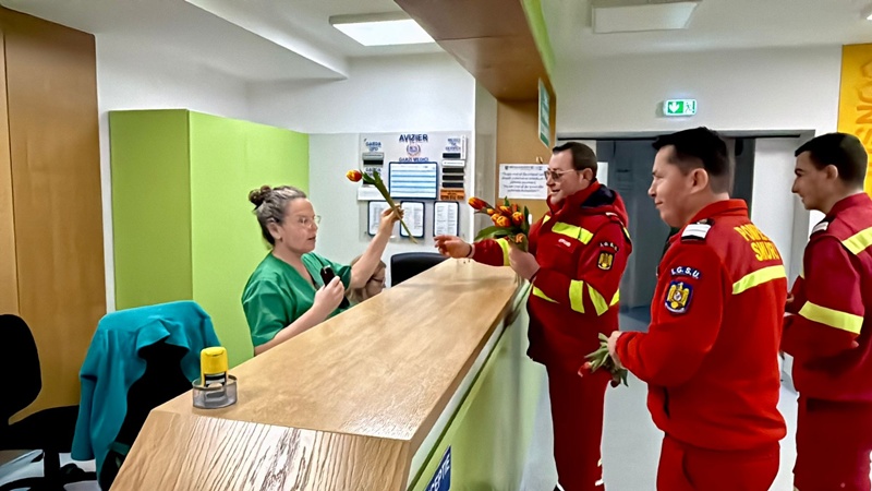 Paramedicii SMURD au oferit flori doamnelor și domnișoarelor care își desfășoară activitatea în cadrul UPU-SMURD, în semn de apreciere pentru profesionalismul, dedicarea și implicarea lor în salvarea de vieți.