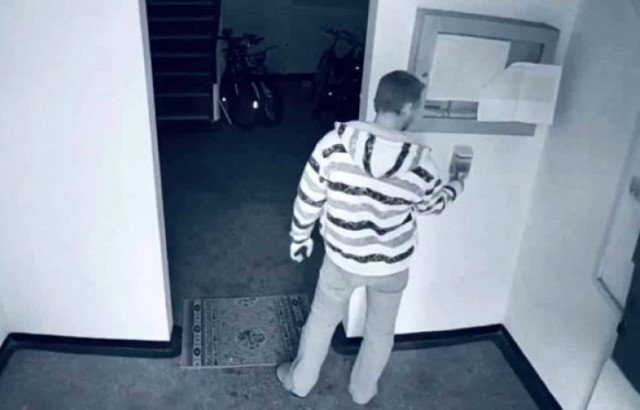 Un bărbat din Suceava filmat în timp ce gustă dezinfectantul dintr-o scară de bloc, apoi îl fură