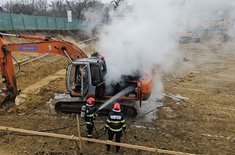 Un untilaj a luat foc în timp ce executa lucrări de excavare pe o stradă din Dorohoi