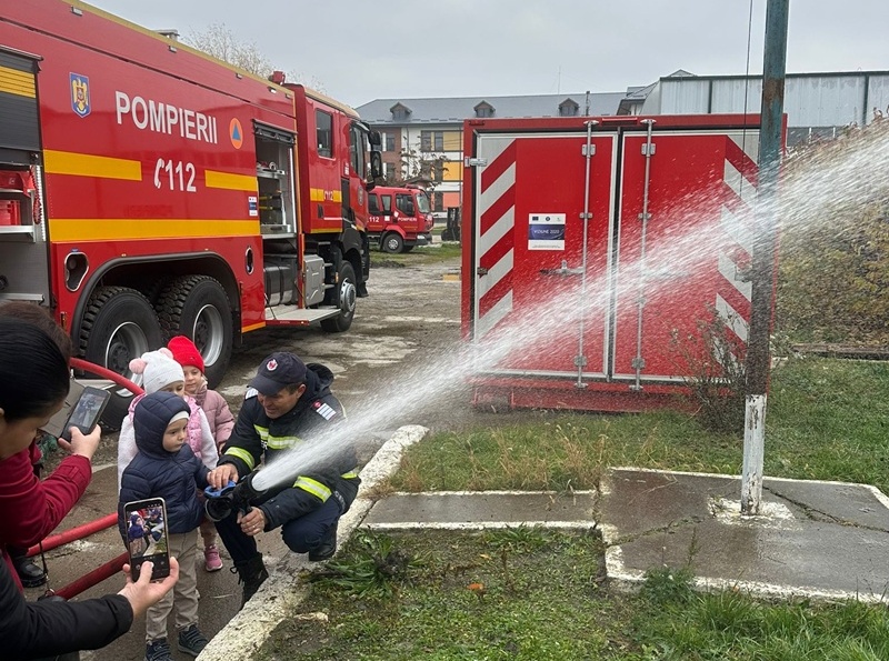 O zi cu pompierii: copiii învață reguli de siguranță și se familiarizează cu intervențiile salvatorilor