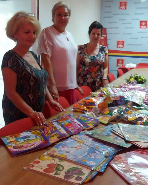În urma solicitărilor venite din partea cadrelor didactice, doamnele social democrate s-au mobilizat și au achiziționat, din fonduri proprii, cărți de colorat, de povești, jocuri care să stimuleze creativitatea – piese de construcție, puzzle, litere, cifre și jucării necesare preșcolarilor, completând astfel baza materială a grădiniței.