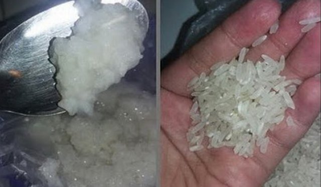 International Business Times susţine că orezul contrafăcut este fabricat dintr-un amestec de cartofi obişnuiţi, cartofi dulci şi răşini sintetice. Această escrocherie s-a înfiripat şi, o bună bucată de vreme, a continuat nestingherită în pieţele din Taiyuan şi Shaanxi. E greu de depistat, orezul având un aspect normal la prima vedere. Sursa: secretele.com