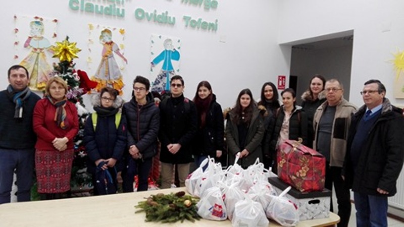 Elevii și profesorii au împărțit cadouri copiilor și au donat Asociației Vlăstarele lui Enescu obiecte pentru Ansamblul de dansuri populare.