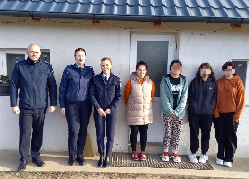 La căsuța familiei, construită cu ajutorul Asociației Grup Civic Botoșani, jandarmii s-au întâlnit cu mama și cele trei fete mai mari, deoarece copiii mai mici erau plecați la repetiție pentru obiceiurile tradiționale de sfârșit de an.